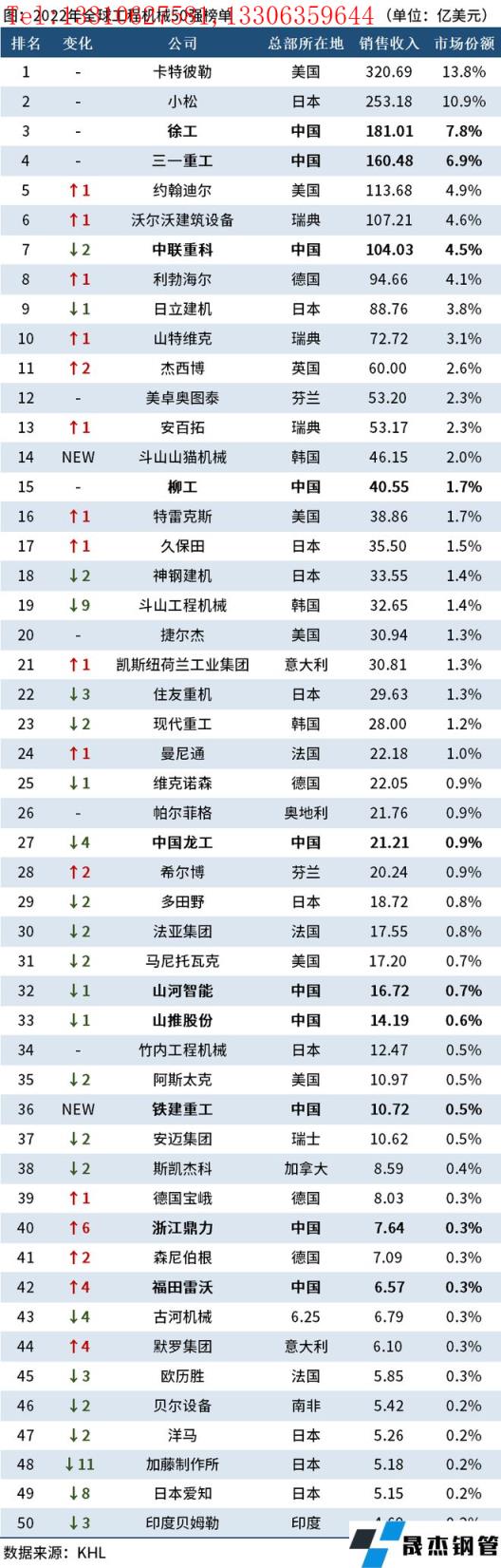 免責聲明:本網站(山東聊城晟杰無縫鋼管廠m.51pvc.cn)刊載的“2022全球工程機械50強榜單出爐,企業銷售額增超20%”等均源于網絡,版權歸原作者所有,且僅代表原作者觀點,本文所載信息僅供參考。轉載僅為學習與交流之目的,如無意中侵犯您的合法權益,請及時聯系刪除。本網站刊登此篇文章并不意味著本站贊同其觀點或證實其內容的真實性,我們不對其科學性、嚴肅性等作任何形式的保證。如果侵犯了您的版權,請盡快聯系我們予以撤銷,謝謝合作!