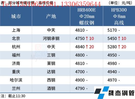 ◎北京:8日早盤建材市場價格試探漲10,河鋼小螺紋4850-4870,大螺紋4730-4750,盤螺5040。(單位:元/噸)