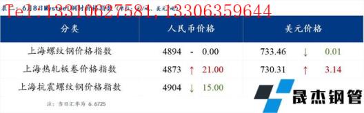 分地區(qū)方面,上海螺紋鋼價(jià)格指數(shù)4894,持平0.0;上海熱軋板卷價(jià)格指數(shù)4873,上漲21.0。(單位:元/噸)