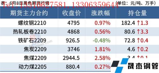 進口礦:6月8日,唐山地區進口礦市場窄幅震蕩,交投氛圍顯冷清。早間PB粉報價1000-1010元/噸,紐曼粉報價1010-1020元/噸,報價較上一工作日行情價格漲5-15元/噸,午后盤面整體回落,報價下調5-10元/噸,交投情緒冷清;無縫厚壁鋼管廠家方面,市場行情波動較大,多謹慎觀望,詢盤冷清。唐山地區了解到成交有:午后曹妃甸港PB粉985元/噸、午后曹妃甸超特粉825、830元/噸成交。