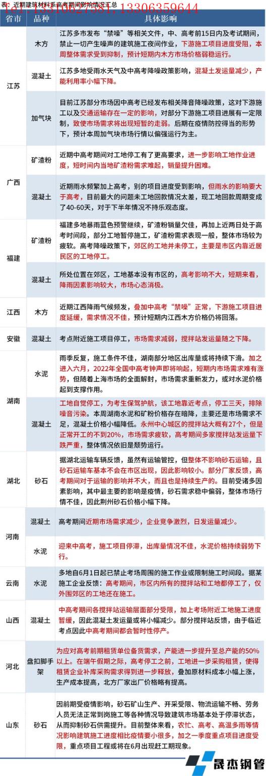 截至6月10日,據(jù)百年建筑網(wǎng)調研顯示,共有12個省市建筑市場和建筑工地建筑工地進度受到明顯影響。整體來看,近兩周全國為為中高考做準備,及多地疫情隱有再抬頭跡象,加之暴雨天氣遍及多地,對于工程項目恢復并不榮樂觀,短期整體市場仍會呈現(xiàn)供需兩弱局面。具體情況如下: