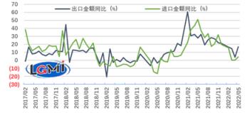 圖3 我國(guó)進(jìn)出口增速走勢(shì)
