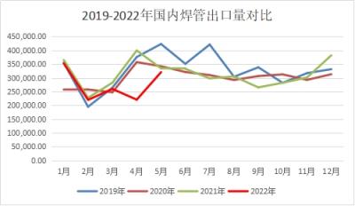引言:5月我國厚壁鋼管出口量增超5成,部分品種甚至增近兩倍,其中無縫鋼管出口量亦實(shí)現(xiàn)了增長35%左右。月內(nèi)俄烏沖突的影響逐步緩解,而美聯(lián)儲加息及各國不同的應(yīng)對政策,使海外環(huán)境仍充斥諸多不確定性。本文分別從我國焊管、無縫管的進(jìn)出口情況進(jìn)行了簡單分析。