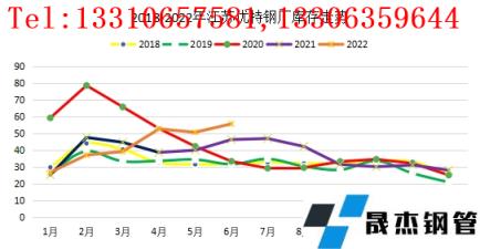 1-6月份我國優特鋼產量小幅下降。據網對樣本企業統計,2022年1-6月,國內優特鋼累計產量1223.87萬噸,與去年同期的1590.89萬噸,減少367.02萬噸。前期疫情影響原料運輸不暢,無縫鋼管廠家被迫減產,后期因需求不濟、虧損加大導致主動減產,預計7-8月份無縫鋼管廠家減產力度還將擴大,來緩解供需矛盾。