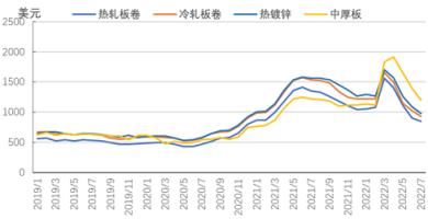 美國經濟衰退風險上升,制造業增速連續回落,加息提高企業和居民的融資成本,扁平材供需或將走弱,8月份北美市場扁平材價格可能保持弱勢調整的態勢。